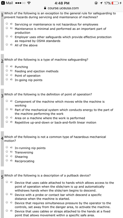 OSHA Quiz 8 Machine Guarding. Commonly Used Machine Guards 12 Table 2. Which of the following is a type of machine safeguarding.